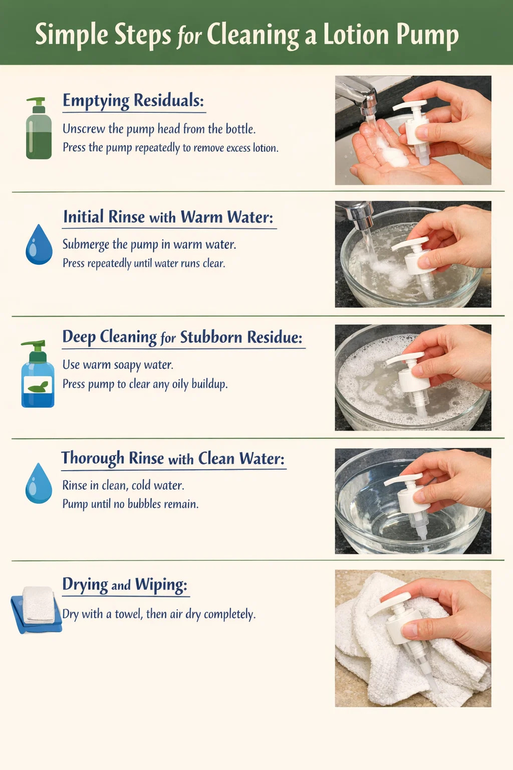 Rengjøring av en lotionpumpe er faktisk ganske enkelt. Med riktig metode kan du enkelt fjerne restprodukt, sikre renslighet og forhindre tilstopping for fremtidig bruk.